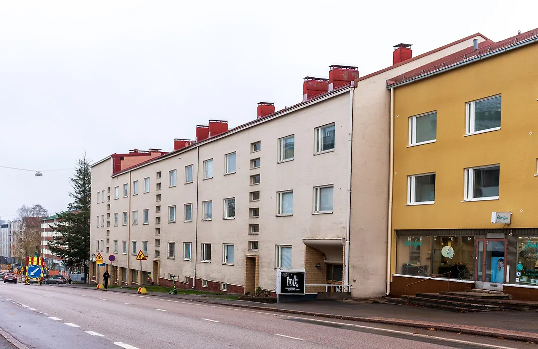 Ez az 46 m^2-es apartman a Lauttasaari metróállomástól egy 10 perces sétatávolságra fekszik.